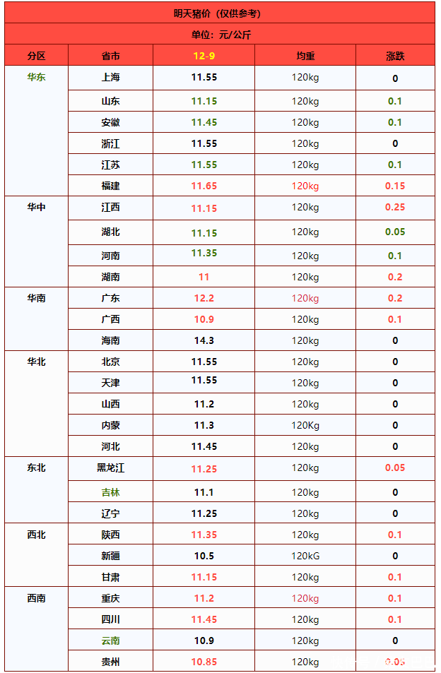 国内南北各省区生猪价格一览表