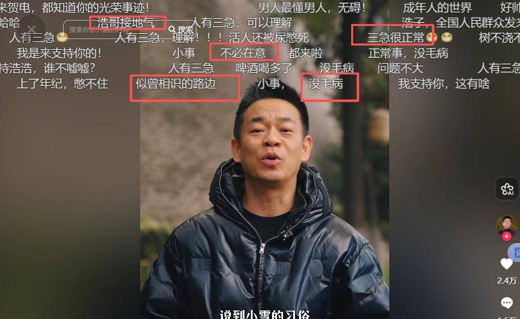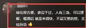 一同出行的孙浩也不知道是不是喝多了,看到路边的灌木丛就开始小便了,不过他也是有点作为公众人物的警觉的,