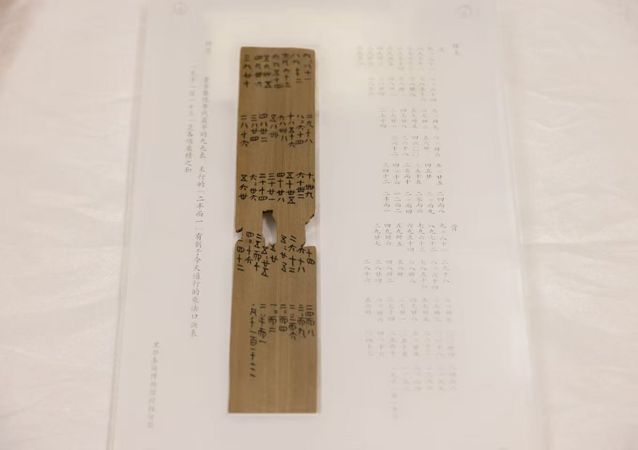 长久以来,秦朝留给人们的印象是重武轻文。里耶秦简的出土,用事实打破了这一偏见。以一枚“九九乘法口诀表”简牍为例,与今天的乘法表很相似,证明在秦代乘法口诀已被普遍运用。不同的是,它是倒着背的,从“九九八十一”开始,比现在的版本多出“二半而一”。最后一句“凡千一百一十三字”,是乘法表中所有乘积的和。“这不仅是运算的法则,更是大秦书同文、车同轨的缩影。”龙京沙说,从其他的里耶秦简可以看到,公元前221年,也就是秦统一天下的那一年,县里就设了官办的学校,负责人叫学佴,相当于我们现在的校长。也就是说,秦几乎在它的行政治理开始,就建立了教育机构。