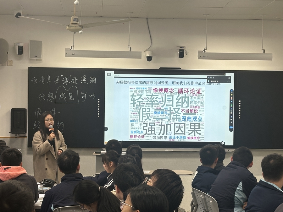 每一组话音刚落,豆包“辩友”几乎无时差回击,但是,经过一番唇枪舌剑,师生很快发现,AI虽然有海量数据作为支撑,但是仍有软肋,比如,它会陷入自我循环论证的怪圈,思维层次无法层层递进,“假二择一”“轻率归纳”“强加因果”等三种作文写作中要避免的逻辑谬误,在它的论证过程中同样存在。随后,同学们又请AI化身“上海高考语文阅卷老师”,对习作进行点评,结果发现,AI老师的评价鼓励和肯定为主,但较为空泛,需要依靠人类智慧进行发现和补充。这节课的课后作业则是,“学习班级同学出口成章的优秀段落,课后请和AI反复对话、辩论,落笔完成属于你的虚拟论敌段。”